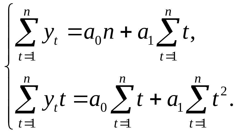 В частности, для нахождения параметров линейного тренда =a0+a1t система (9.28) упрощается и имеет вид