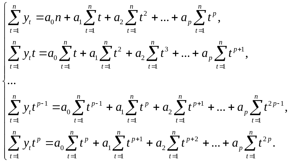 Система состоит из (p+1) линейных уравнений. Решение системы дает оценки искомых коэффициентов.