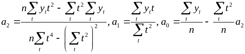 Для параболического тренда p=2 и =a0+a1t+a2t2 получаем