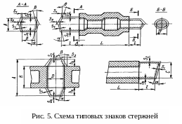 Размеры горизонтальных и вертикальных знаков стержней определяют по ГОСТ 3212-92 [10], исходя из длины знака l и поперечного сечения D или (A+B)/2 (табл.5,6).