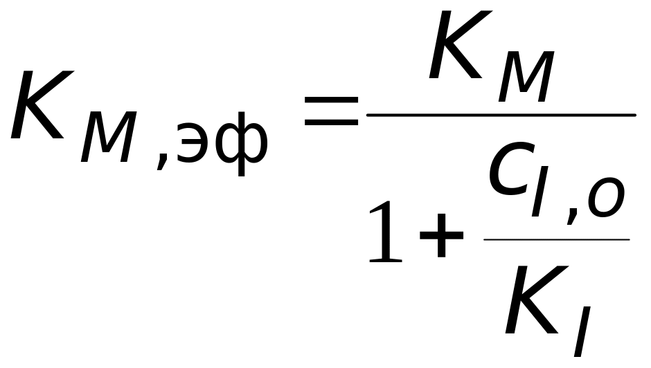 Из выражения для эффективной константы Мизаэлиса можно получить соотношение для вычисления константы ингибирования: