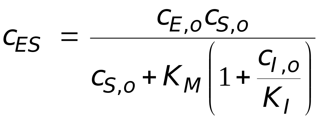 Теперь можно получить выражение для начальной скорости реакции, ускоряемой ферментом в присутствии конкурентного ингибитора: