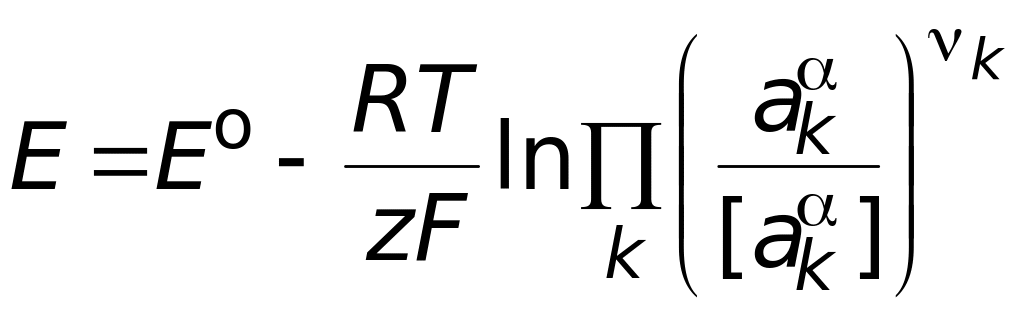 Теперь можно выразить ЭДС элемента с учетом активностей компонентов реакции