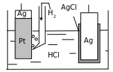 Слева в схеме ГЭ должен располагаться электрод, обладающий более отрицательным электродным потенциалом, а справа − более положительным. Логично поэтому сравнить стандартные электродные потенциалы указанных электродов и выяснить, какой электрод, в какой части гальванического элемента будет расположен. Электродные потенциалы в таблицах сгруппированы по типам электродов, поэтому, необходимо определить, к каким типам эти электроды относятся. Очевидно, что первый из указанных электродов − это электрод второго рода (хлорсеребряный электрод), а второй электрод − это газовый (водородный) электрод.