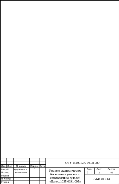 В данной курсовой работе произведено технико-экономическое обоснование участка по изготовлению деталей «Палец 1035 0091.005». Объем выпуска – 2500 штук в год. Решены вопросы организации участка и оперативного планирования производства. Составлена смета затрат и произведена калькуляция цеховой себестоимости изготовления деталей.