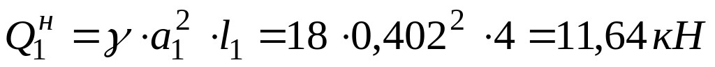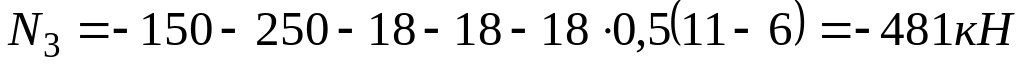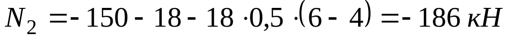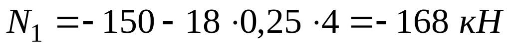 (другий член у виразі для N1 – це власна вага ділянки І Q1=18 кH),