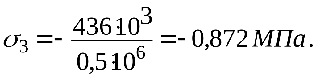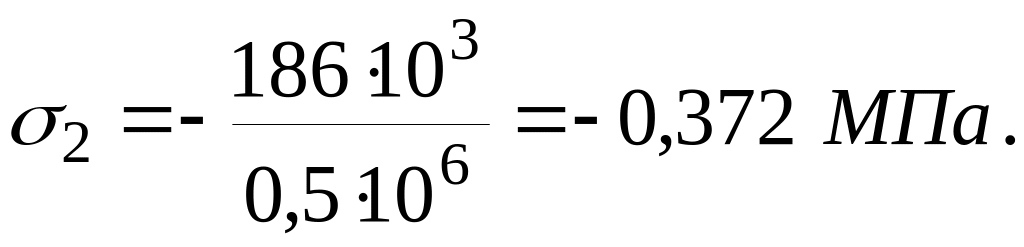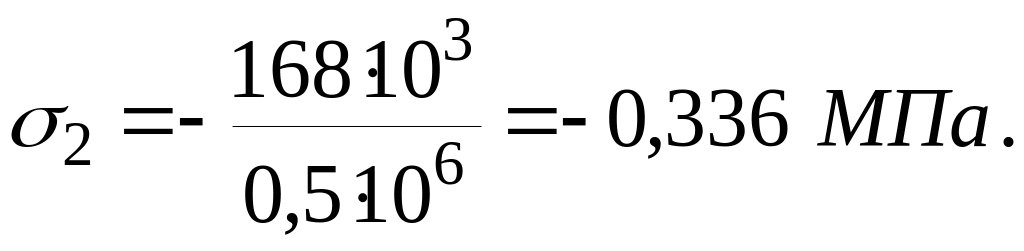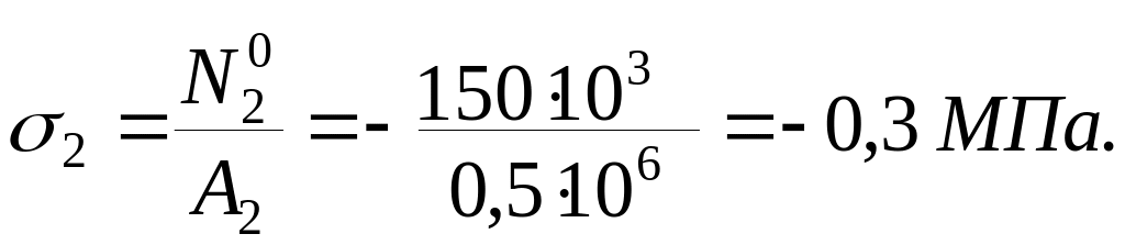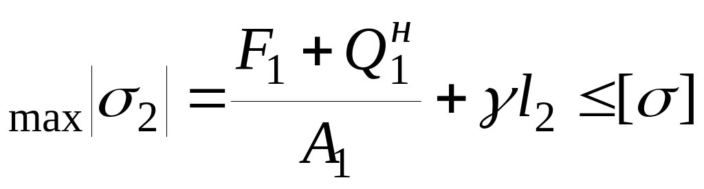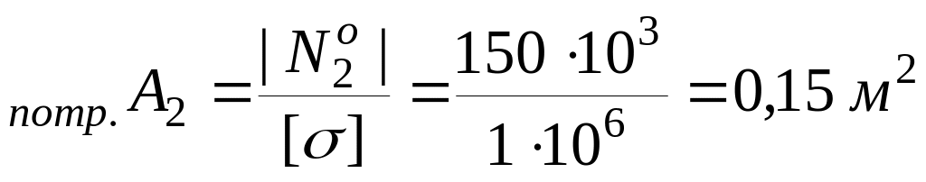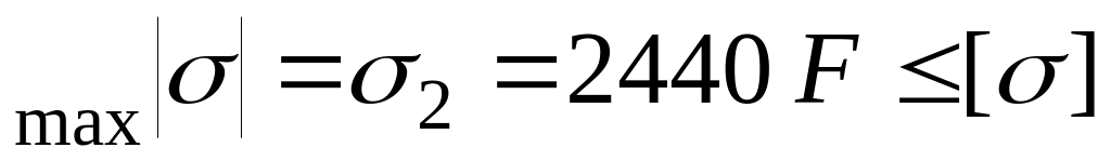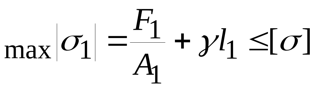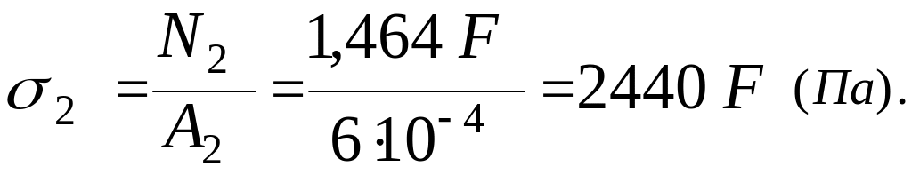 Як бачимо, найбільш напруженим (небезпечним) буде стержень 2 (в ньому виникає найбільше за абсолютним значенням нормальне напруження). Запишемо для нього умову міцності за нормальними напруженнями