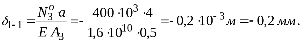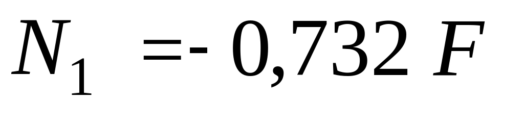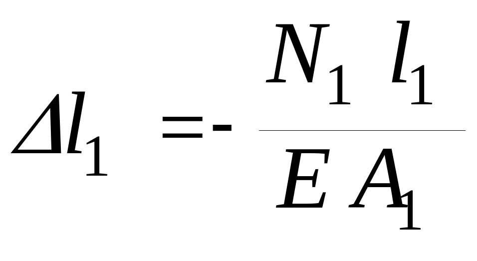 У рівняннях статики, які складаються в методі перерізів, усі невідомі зусилля вважаються додатними й такими ж вони зображуються (розтягуючими на рис. 1.5,б). Проте, на деформованій схемі деякі стержні можуть бути стиснутими (стержень 1 на рис. 1.5,а). У цьому випадку, для приведення у відповідність знаків зусиль та деформацій, вирази для деформацій стиснутих стержнів треба записати зі знаком “–“.