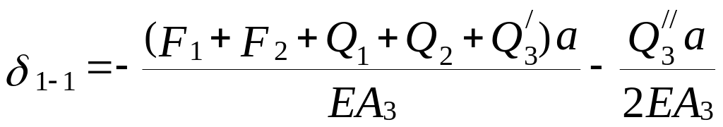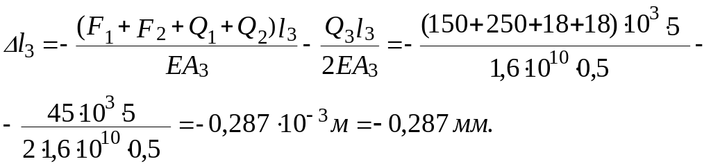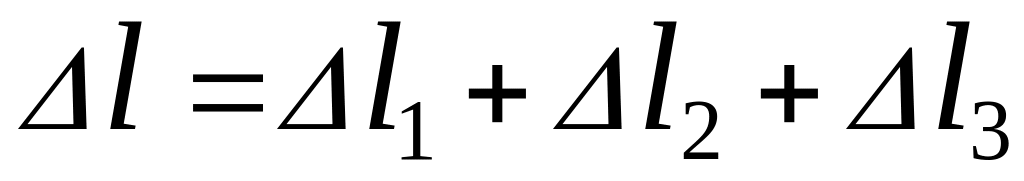 Повна деформація бруса дорівнює алгебраїчній сумі абсолютних деформацій усіх ділянок: