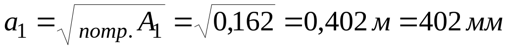 а відповідні розміри квадратного поперечного перерізу ділянки визначаться за формулою