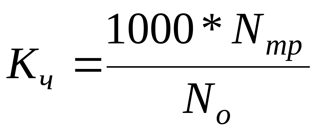 Для оценки травматизма в производственных условиях, кроме абсолютных показателей, используют относительные показатели частоты и тяжести травматизма. Показатель частоты травматизма Кч определяет число несчастных случаев, приходящихся на 1000 работающих за определенный период