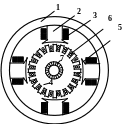 Негізгі полюстер (2) өзекшеден және (3) қоздыру орамдарынан құралады. Өзекшелердің (5) ұштары бос ауа қуысында магнит индукциясының біркелкі таралуын қамтамасыз етеді. Негізгі полюстердің орамдары қоздыру магнит ағыны пайда болатындай етіп жалғанады.