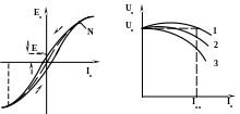 1.10 - суретте ортадағы үзік сызықтармен сызылған сипаттама генератордың магниттік қасиетін сипаттайтын есептік сипаттама болып табылады. Гистерезис ілмегі полюстер мен ярманың қасиетін анықтайды және N нүктесі арқылы магнит тізбегінің қанығу деңгейін анықтайды.