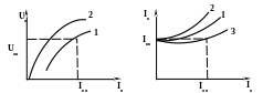 Генератордың сыртқы сипаттамасы (1.11-сурет, қисық 1) - шығыс кернеуінің якорь тогына (жүктеме) тәуелділігі, бұл кезде қоздыру тогы мен кедергісі тұрақты, яғни U = f(Iя), Rв = const (Iв = const), және n = const.
