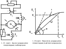 Тәуелсіз және параллель қоздырылған генераторлардың сызбанұсқалары 1.9 - суретте көрсетілген.