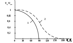 2.6 –сурет. Нөлдік сымы бар үш фазалы басқарылатын түзеткіш шығысындағы кернеудің тиристорды ашу бұрышына тәуелділігі.