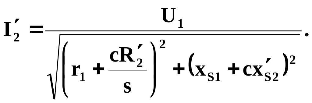 Іс жүзінде асинхронды машиналар үшін с = 1,03 ÷ 1,08, бірақ есептеулер кезінде с = 1 деп есептеуге болады. Асинхронды қозғалтқыштың (4.17) теңдеуіне сәйкес келетін Г-тәрізді ауыстыру схемасы 4.5-суретте көрсетілген, бұл схема бойынша қозғалтқыштың барлық параметрлері жүктемеге тәуелсіз, яғни тұрақты болып есептеледі, жүктемеге байланысты өзгеретін жалғыз параметр ол s сырғанау болып табылады.