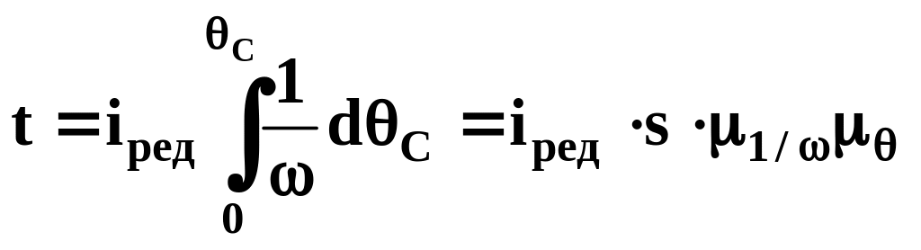 М΄с=f(θc) және ω=f(М) сипаттамалары бойынша ω=f(θc) тәуелділігін құрады және сол бойынша кері тәуелділікті (1/ω)= f(θc) есептейді және құрады. ω/iред =d θc/ dt теңдеуінен механизмнің 0 нүктесінен θc бұрышына орын ауыстыруының уақыт бөлігі келесіге тең болатындығын анық көреміз:
