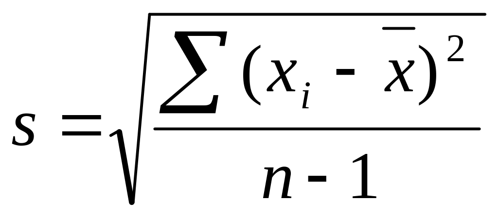 Наиболее практичной и широко распространенной оценкой разброса данных является стандартное выборочное отклонение. Этот показатель обозначается символом S и равен: