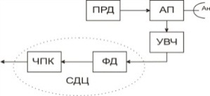 УВЧ-усилитель высоких частот; АП-антенный переключатель; ФД-фазовый детектор;ЧПК-через периодный компенсатор
