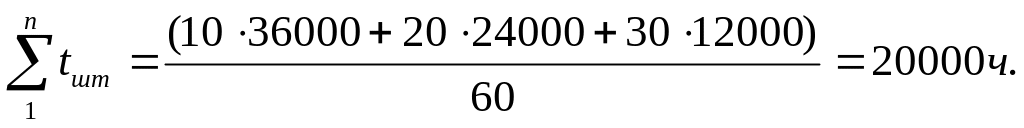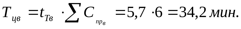 Рассчитаем такт переменно-поточной линии. Для этого определяем общую трудоемкость изготовления деталей по формулам (13,14).