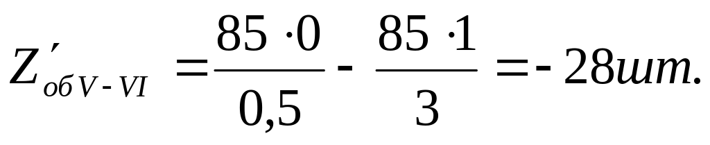 На VI операции станок начинает работать на 85 мин. раньше, чем на V операции. Следовательно, для обеспечения нормальной работы станка на VI операции, необходимо заранее создать и подать к началу работы линии задел деталей в количестве: