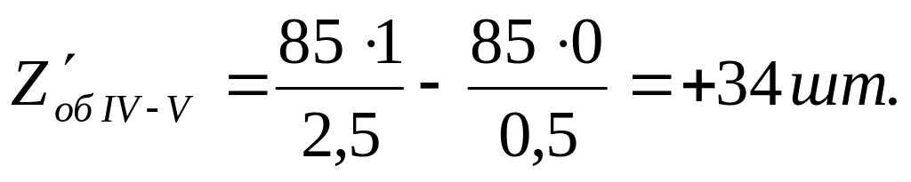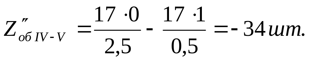 Так как длительность работы станка на VI операции (Тдл vi) равна 102 мин., совместно станки будут работать на V и VI операциях 17 мин. (102 - 85). Этот отрезок на графике обозначен точками 5 и 6. За 17 мин. станок на IV операции обработает: