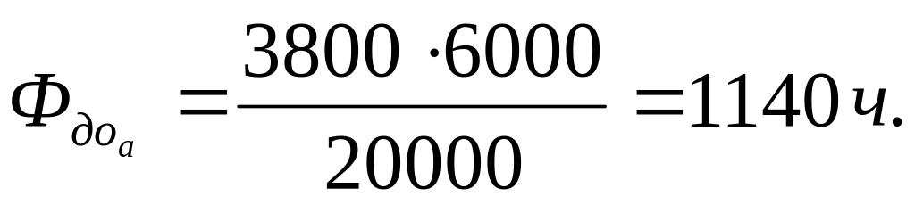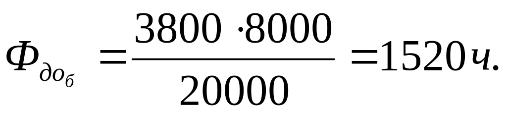 Распределяем действительный годовой фонд времени работы оборудования пропорционально общей трудоемкости: