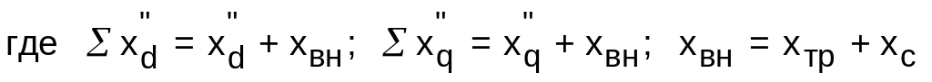 где Sхd = хd + хвн; Sхq = хq + хвн суммарное синхронное сопротивление генератора по продольной и поперечной осям соответственно; d0 фазовый угол включения.