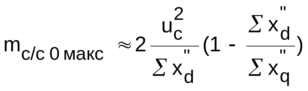 Чем симметричнее ротор (меньше разница между х"d и х"q ) и чем больше внешнее сопротивление, тем меньше mс/с 0 макс. С этой точки зрения в лучшем положении находятся турбогенераторы с массивным ротором (для серийных турбогенераторов х"d/х"q » 0,7) и гидрогенераторы с успокоительными контурами по обеим осям (для серийных гидрогенераторов х"d / х"q » 0,9¸1,0).