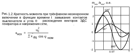 Эта величина меньше, чем максимальный ток несинхронного включения (1.4), и соответствует току несинхронного включения с углом сдвига векторов » 30 эл.град.