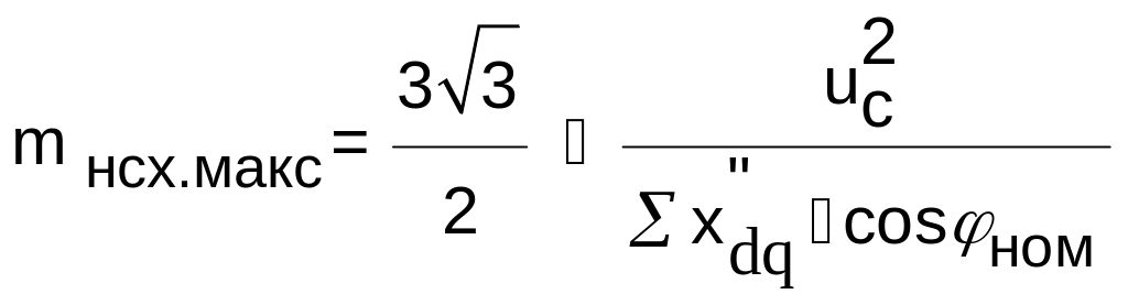 Как правило, хс ¹ 0, и поэтому электромагнитный момент при самосинхронизации всегда меньше электромагнитного момента при трехфазном коротком замыкании, на который генераторы должны быть рассчитаны, тогда как при ошибочном несинхронном включении он может превысить его (рис.1.4).