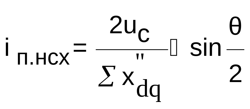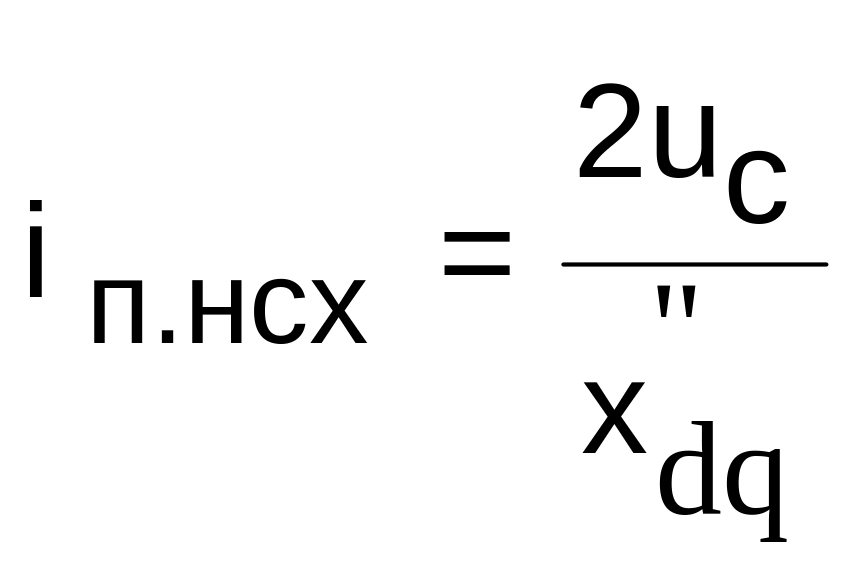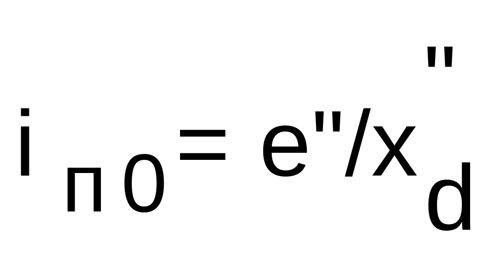 В начальный момент времени (t = 0) генератор представляется своими сверхпереходными сопротивлениями. Так как генератор в этот момент времени ещё не возбужден, его ЭДС (е”) равна нулю и периодическая составляющая тока статора (iп.с/с 0 ) определяется лишь напряжением сети, которое может превышать номинальное не более чем на 5 %: