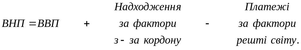 Валовий національний продукт (ВНП) —це ринкова вартість кінцевих товарів і послуг, вироблених за певний проміжок часу, як правило, за рік, за допомогою факторів виробництва, що належать резидентам певної країни, наприклад України, незалежно від того, де використовувались ці фактори — в Україні чи за кордоном. Навпаки, та частка продукції (доходу), що вироблена в Україні за допомогою факторів виробництва, що належать іноземцям, вираховується із ВНП України.
