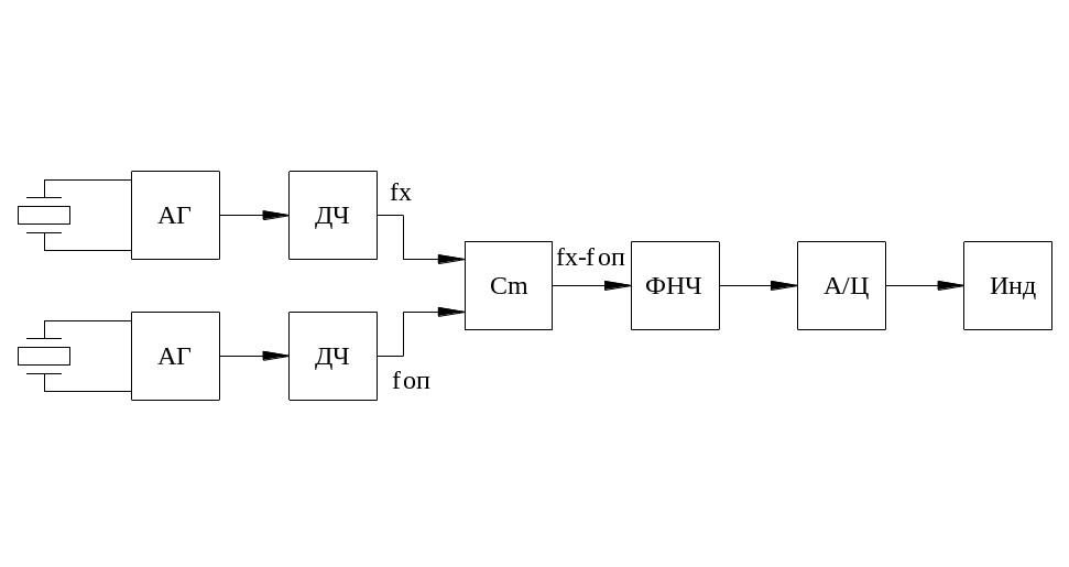 Измеряемое воздействие модулирует собственную частоту и потери Пр , что приводит к частичной или амплитудной модуляции несущей частоты на выходе генератора.