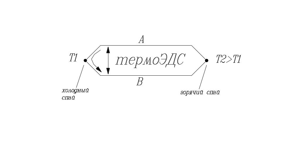 Проводник А положителен по отношению к проводнику В, если ток течет от проводника А к В в более холодном спае.