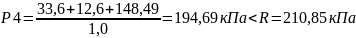 Рассматриваем сечение с максимальным P=194,69кПа (сечение 4).