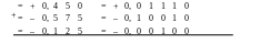 Выполним суммирование двух десятичных чисел = + 0,450 и = – 0,575 в двоичной СС с точностью до пяти знаков после запятой в дополнительном модифицированном коде и сравним результаты суммирования в двоичной и десятичной СС.