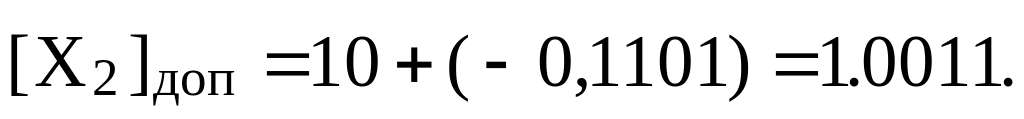 Дополнительный код отрицательного двоичного числа находится как дополнения модуля этого числа до граничного числа, представляемого в данной разрядной сетке. Дополнительный код для двоичных чисел меньших единицы образуется по формуле: