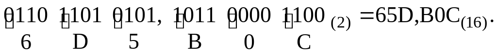 Правила и примеры перевода чисел в двоичную систему счисления из шестнадцатеричной приведены в [1, с. 75], [2, с. 154].