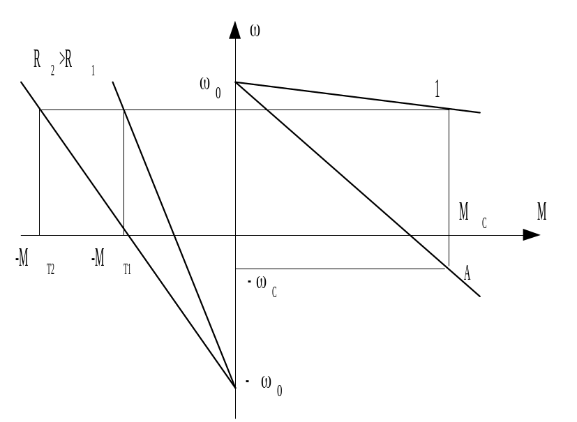 1) при наличии отрицательного статического момента нагрузки, когда электродвигатель под его действием в сторону вращения, получив ускорение, достигает скорости, превышающей скорость идеального холостого хода;