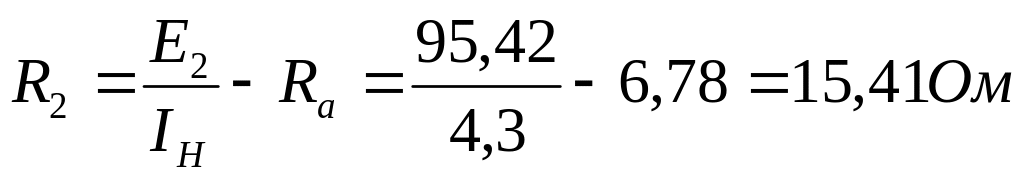 Определим величину добавочного сопротивления R2 в цепи якоря для осуществления режима динамического торможения при условии, что М=МН , n2=1500 об/мин(2=157,5с-1).