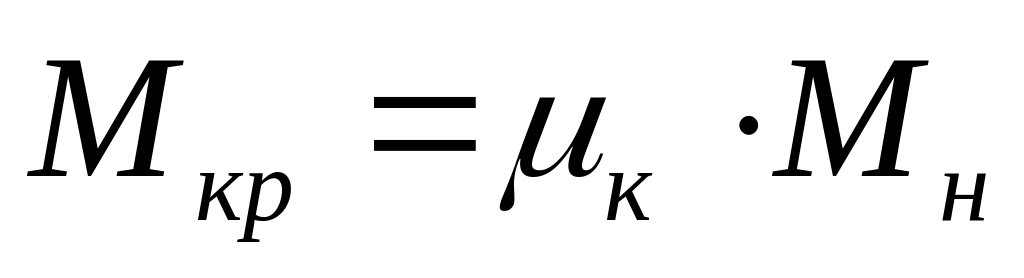 Максимальный (критический) момент двигателя Мкр определяется по номинальному моменту двигателя Мн и его перегрузочной способности к: