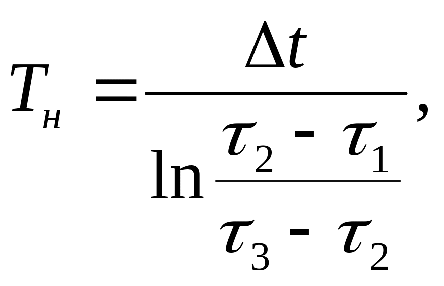По методу трех точек на кривой нагревания берутся через равное приращение времени три точки: 1, 2, 3. Постоянная времени нагревания определяется по формуле