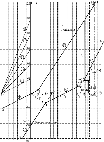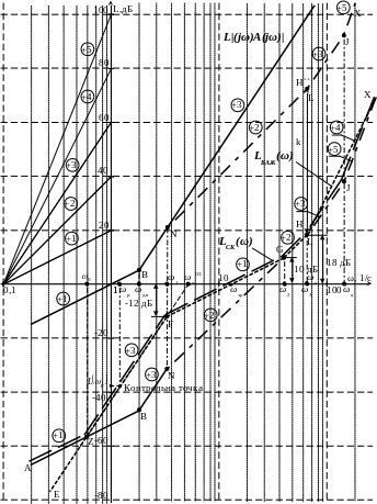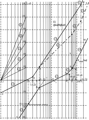 Будуємо ЗЛАЧХ незмінної частини після введення ПКП диференціально-інтегруючого типу (ламана ABNLJX на рис. 24).