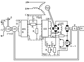 - •Структурна схема слідкуючої сау з зворотнім зв’язком за струмом та швидкістю