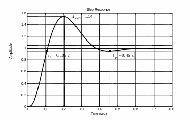 Визначимо основні показники якості перехідного процесу (рис. 33) синтезованої слідкуючої САУ .