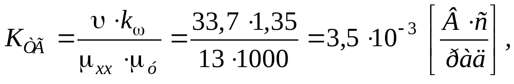 Визначаємо коефіцієнт передачі тахогенератора за рівнянням .