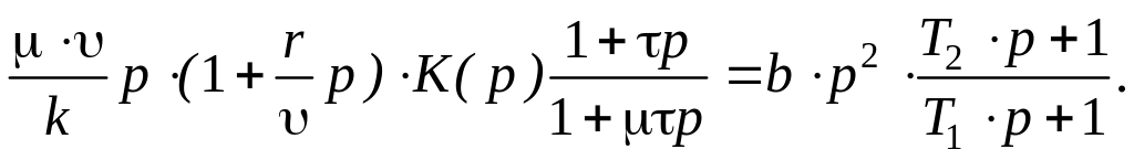 При цьому, передаточні функції скорегованої САУ та побудована на основі ЗБЛАЧХ другого типу повинні дорівнювати наступним рівнянням.