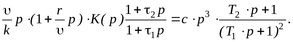 При цьому, передаточні функції скорегованої САУ та побудована на основі ЗБЛАЧХ третього типу повинні дорівнювати наступним рівнянням.